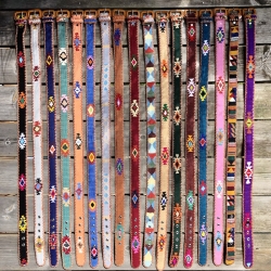 L'emplacement et la couleur des motifs varient sur chaque pièce, selon l'inspiration de l'artisan. De ce fait, la ceinture que vous recevrez ne sera pas complètement identique à celle qui figure sur la photo.