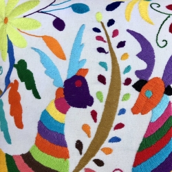 Housse de coussin typique brodée à la main par un collectif d'artisanes mexicaines.
