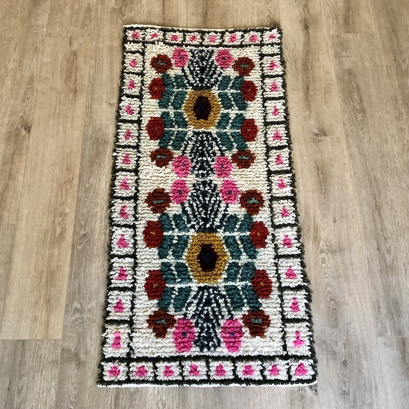 Tapis pure laine, entièrement fabriqué à la main par une famille d'artisans partenaire.