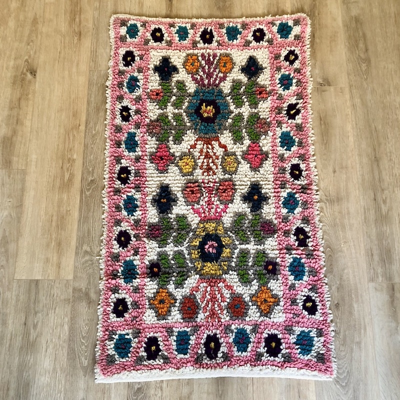 Tapis pure laine, entièrement fabriqué à la main par une famille d'artisans partenaire.