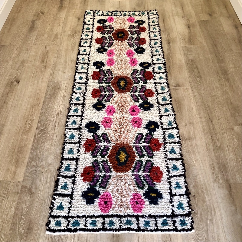 Tapis pure laine, entièrement fabriqué à la main par une famille d'artisans partenaire.