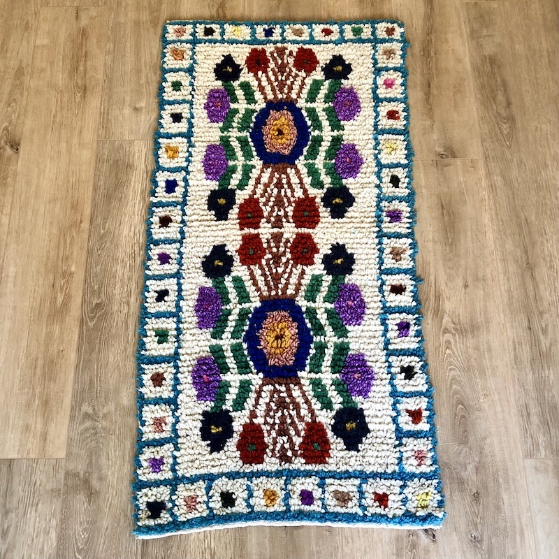 Tapis pure laine, entièrement fabriqué à la main par une famille d'artisans partenaire.